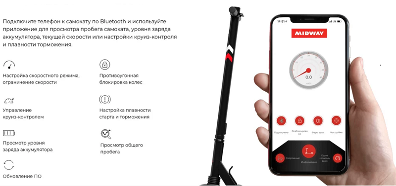 4. Мобильное приложение Midway, через которое можно управлять самокатом